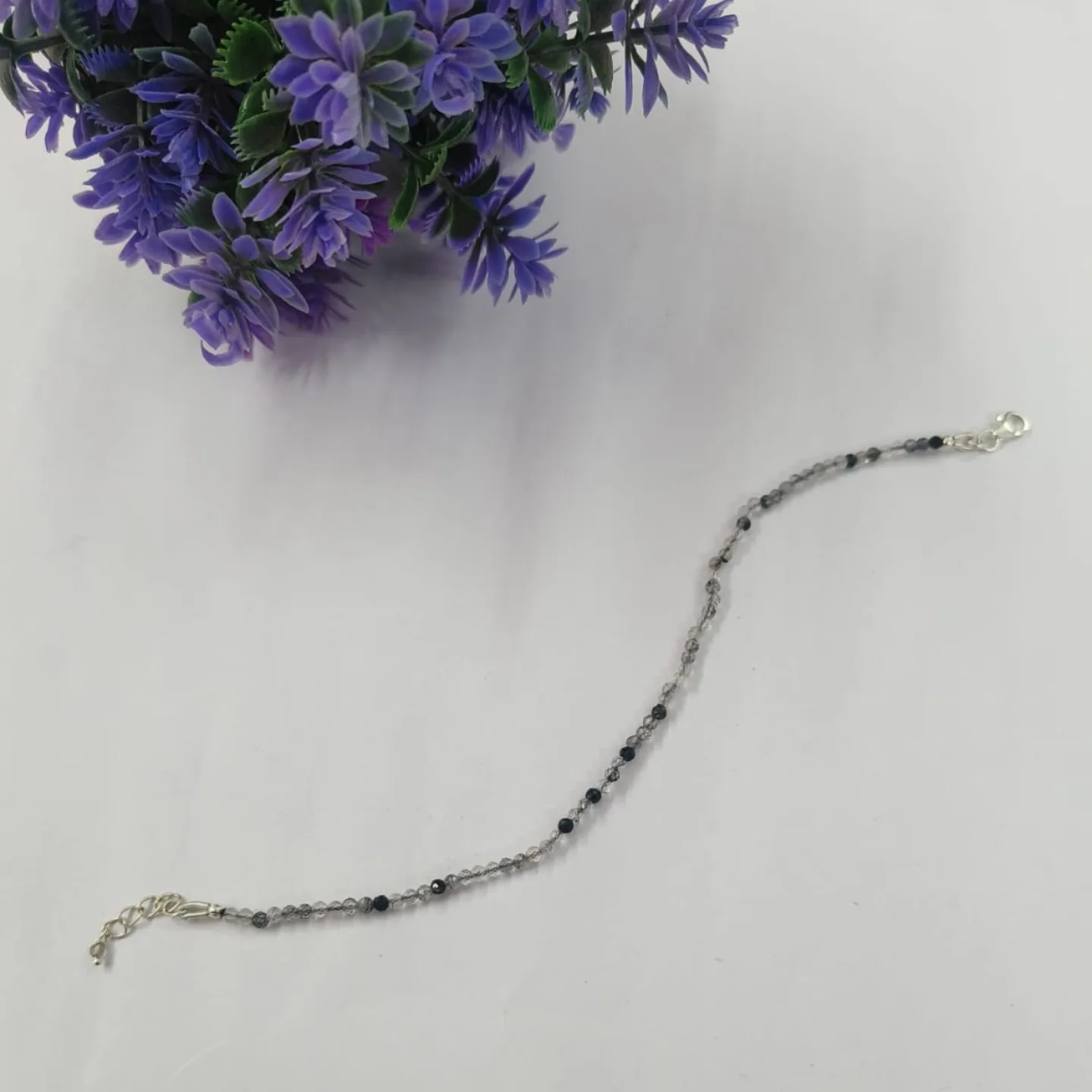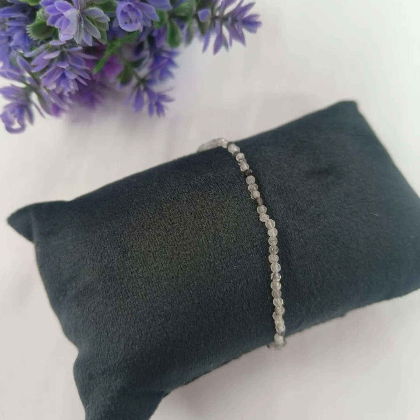 Elegant and modern, this Black Rutile Quartz Bracelet features naturally unique needle-like rutile inclusions within each translucent bead—creating a striking blend of clarity and contrast.